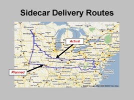 Details -- The evening prior, I became extremely stressed over the welfare of my passenger and my time constraints. Without heated clothing, Don would not be able to do the required miles while stopping to keep his body core temp up if he had continued with me in the sidecar. Don was not able to keep the "regional" rental car beyond Champaign, IL and would need to find alternate transportation in order to continue the trip safely. Unwilling to turn my friend into an enemy by abandoning him at a bus station, I made the command decision to abort the ride and just get the delivery accomplished.