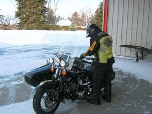 So there we were, the first day of 2009, standing in the dealership's snow packed icy parking lot launching the new sidecar owner and his "mechanic" on one frosty (frost bitten?) ride.