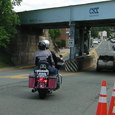 Then I motored on and turned left into a bank parking lot thinking Don would follow when automobile traffic would allow. On the other hand, Don expected to see me return when automobile traffic would allow. (The next stop of the tour required a left turn BEFORE the bridge.) Both riders are waiting on the other and it was now a matter of “who will come for who first?”