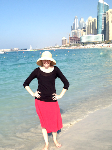 Tabitha graduated from Northeastern University with her PhD in English. The job search was global and yielded a position at the American University in Dubai. Yes, Tabitha lives and works in Dubai, a city with record-setting skyscrapers, indoor ski slopes and a stunningly diverse population.