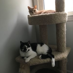 When he is out of harness, he pals around with the two cats, Tigger and Patches.