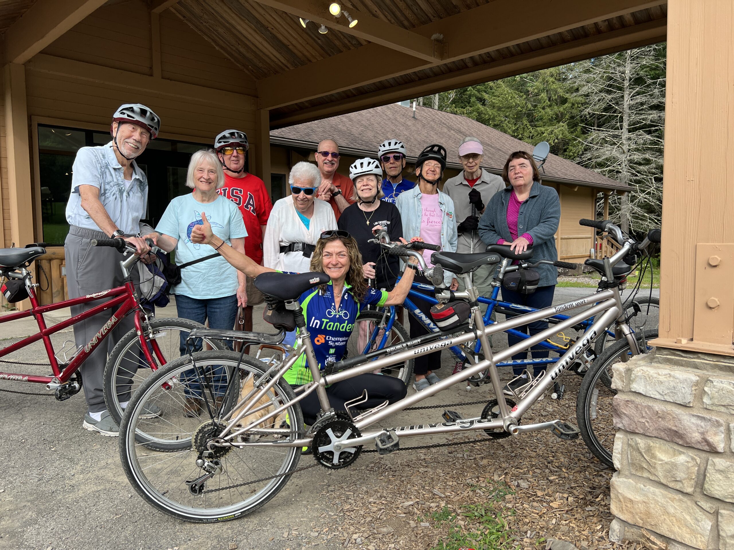 Tandem bicycling is offered when we are able to recruit captains. But captains and stokers (our blind or vision impaired participants) are only half of the effort. The other half is the maintenance of the bikes that were in storage for two years. Our friends who live near Sky Lake offered their time and talent to ensure tires were pumped up, chains well oiled, and all cables and levers moved as designed.