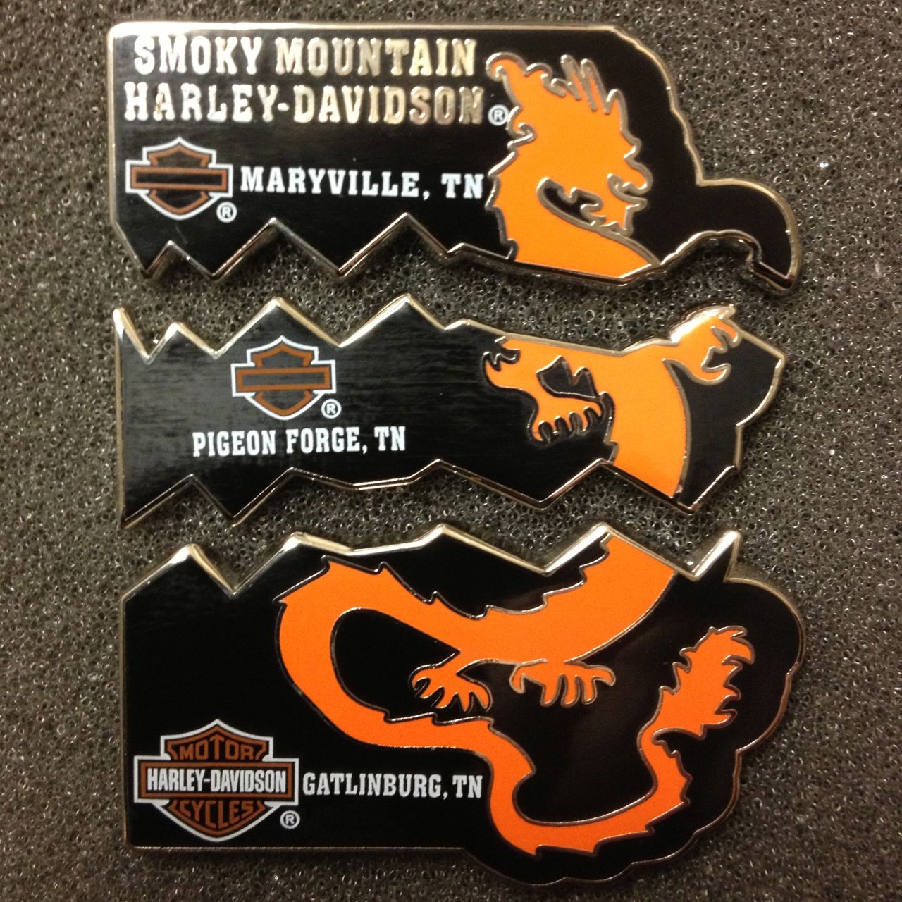 The Smoky Mountain Harley-Davidson shop in Maryville, Tennessee has two affiliate shops in the area. As is the practice of most dealerships, there is a pin associated with each shop. I decided that my ride for the day would be to the affiliate shops to collect a total of three pins.