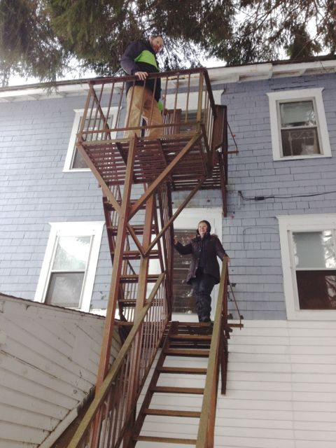 I think it also applies to century old fire escapes. When the group stays in a new facility, part of the exploration includes knowing how to get out of the building under any circumstances. Of course this is good practice whether or not you have vision and is a part of the safety mindedness of all participants. While the photo here is posed, all members of the group actually descended the somewhat antique but fully functional fire escape. The hazard was not so much going down the stairs on the escape but rather the snow on the wooden decking and ramp leading away from the building. Guides and workers were on hand to spot each other and the drill was successfully conducted without incident. (For the record: This was not a mandate of the inn. If you stay there, you’ll not be asked to conduct a personal fire escape drill. We did it for safety orientation and because we wanted the experience.)