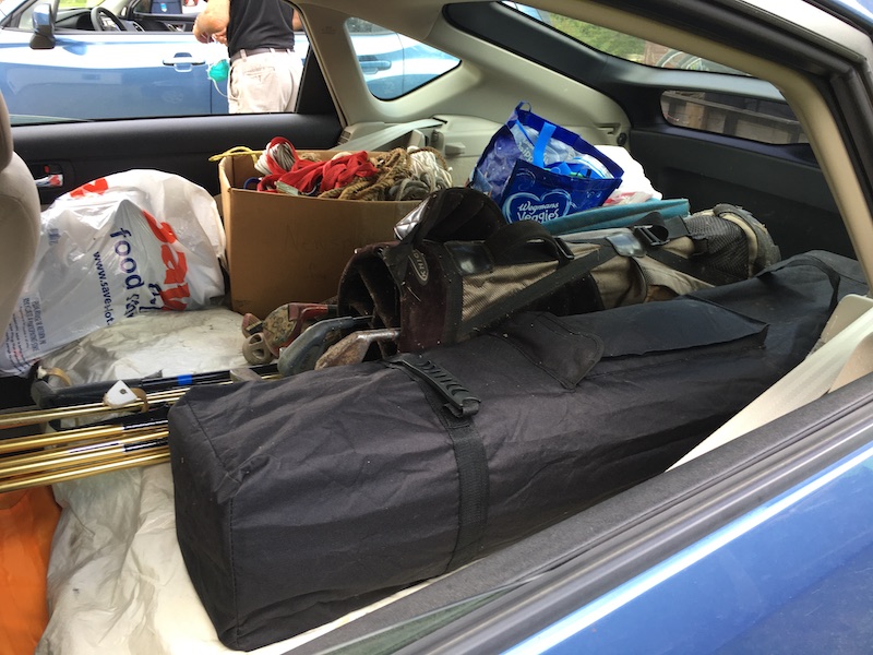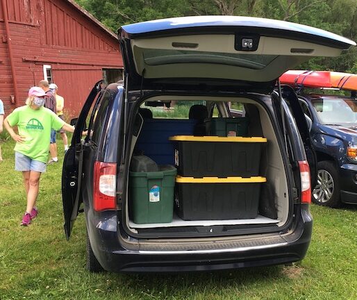 Although Joan has already quoted John Heywood (c. 1497 – c. 1580) on Facebook, it bears repeating: “Many hands make light work.” Indeed, in a mere two hours and a single trip from LOV barn to the Exit 84 storage facility, we were done! Equipment was offloaded, stacked, packed, photographed, and back on the road for the earned reward — ice cream!